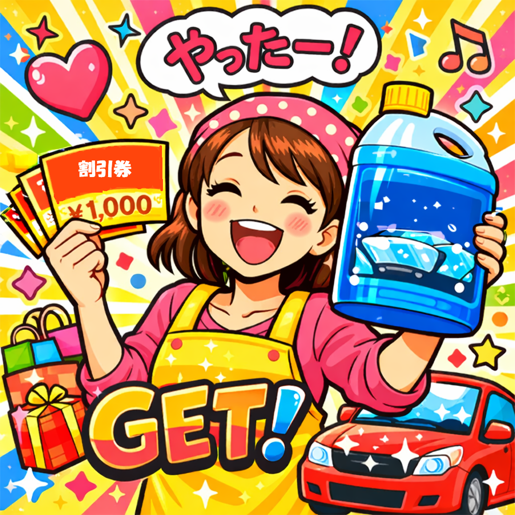 - 引換券: 油膜取りウォッシャー液が無料でもらえる